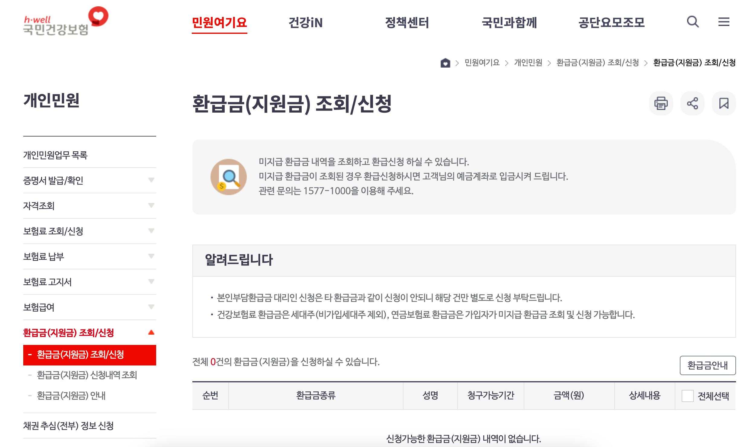 건강보험 본인 부담금 환급 | 민원 안내 및 신청