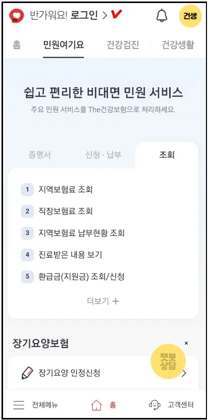 국민건강보험 - 의료비 환급금 조회 신청