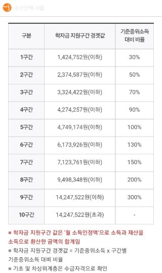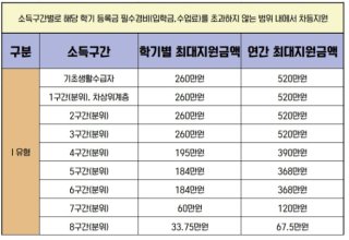 - 소득 구간은 지원 금액의 핵심: 가구의 소득과 재산을 종합적으로 평가한 '소득 인정액'을 기준으로 1~10구간이 나뉘며, 구간이 낮을수록 더 많은 장학금을 받습니다.