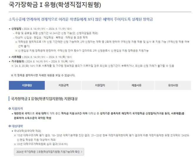 2024년 국가장학금 소득 구간 및 지원 금액 (현재 최신 정보) 📊