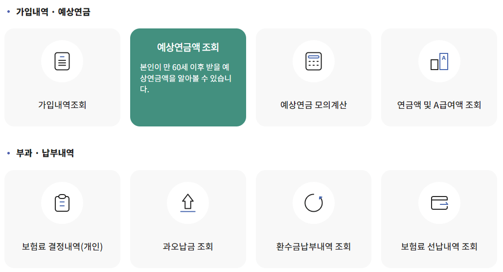 국민연금(노령연금) 예상수령액 조회 바로가기