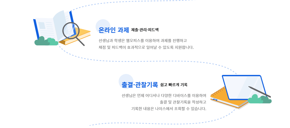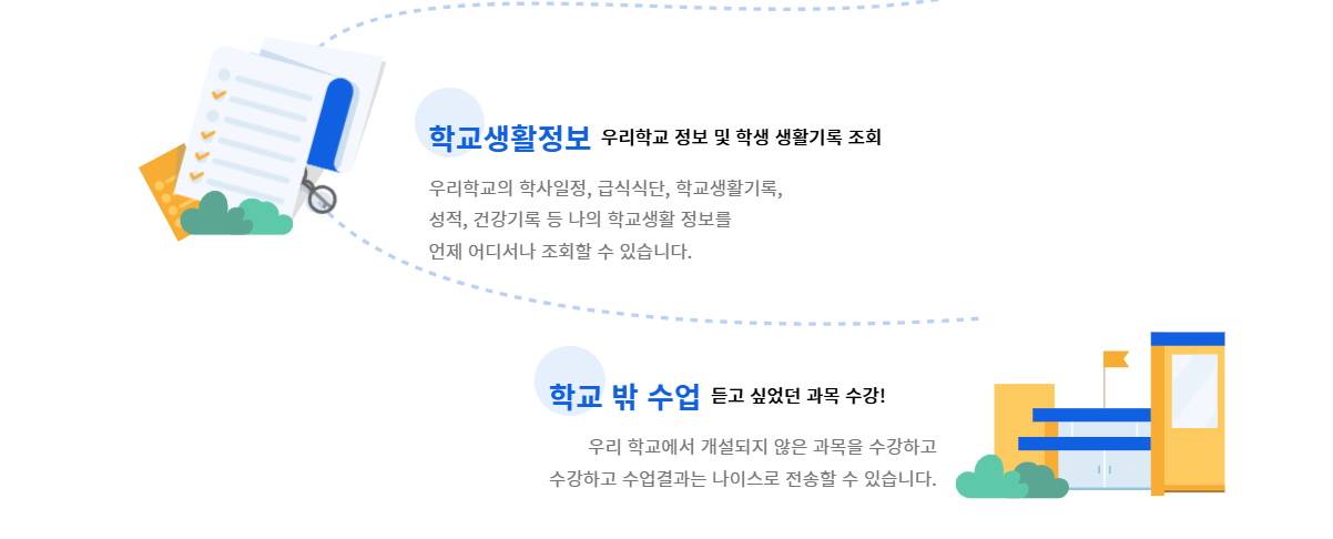 | 출결·성적 관리 | 학교생활 정보를 손쉽게 확인할 수 있습니다. |