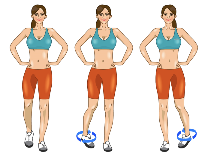 - 발목 돌리기: 양발 각각 시계/반시계 방향으로 5회씩 - 발목 관절 준비