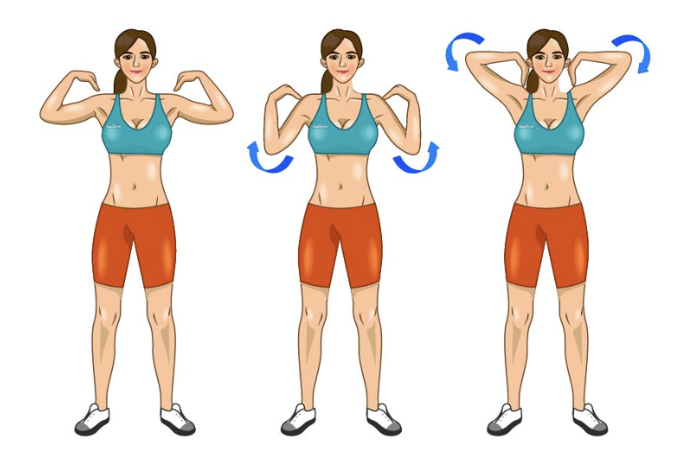 - 어깨 돌리기: 앞뒤로 각 10회 천천히 - 어깨 관절 가동 범위 확보