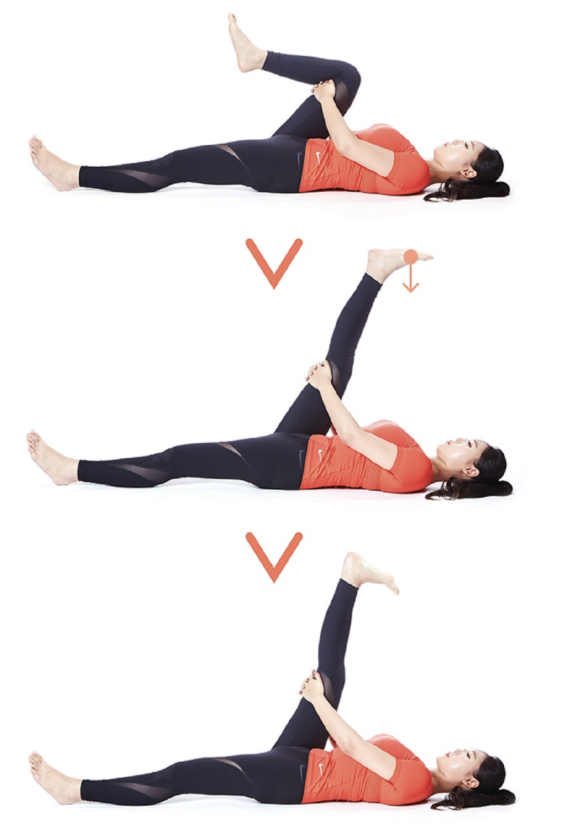 - 누워서 다리 들어 올리기: 10회 2세트, 각 세트 사이 60초 휴식 - 하복부 근육 인지 및 강화. 팁: 허리가 바닥에서 뜨지 않도록 복부에 힘주고, 다리를 천천히 올리고 내리기.