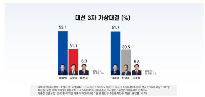 여론조사는 조사 기관, 조사 방식(ARS, 전화 면접 등), 표본 수, 응답률, 조사 시점 등에 따라 결과가 달라질 수 있습니다. 따라서 한 가지 조사 결과에만 의존하기보다는 다양한 조사를 종합적으로 살펴보고 추세를 읽는 것이 중요합니다.