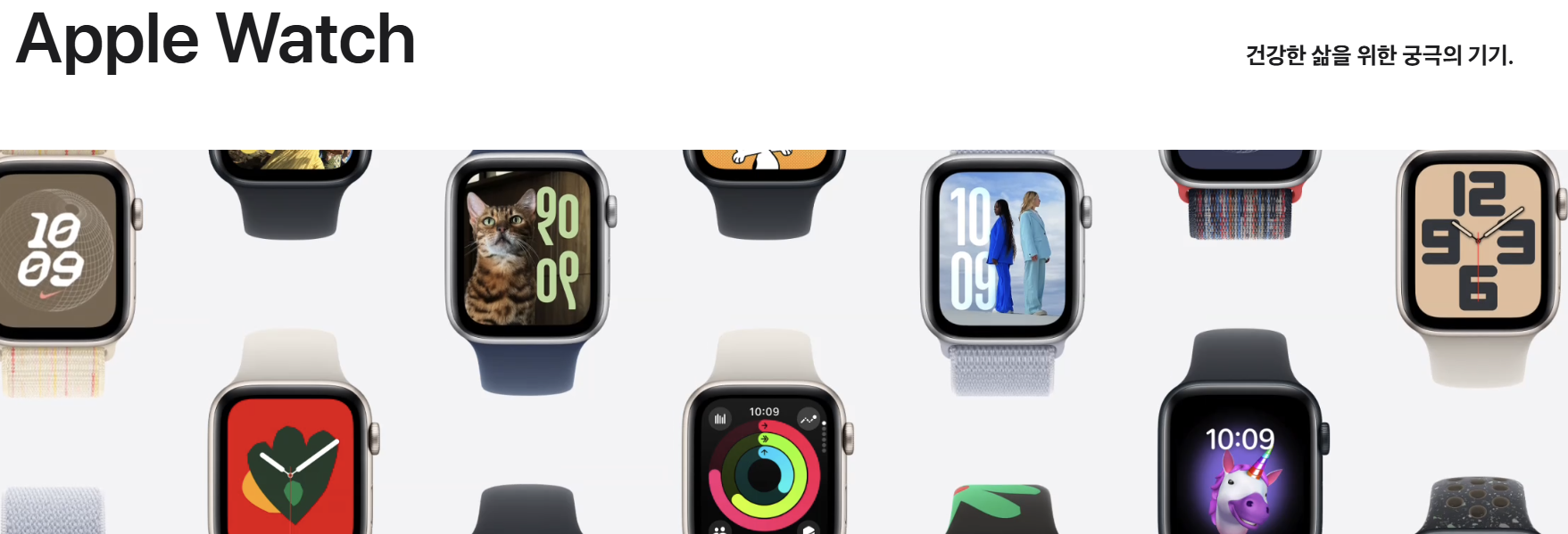 Apple Watch는 건강한 삶을 위한 궁극의 기기입니다. Apple Watch Ultra 2, Apple Watch Series 10, Apple Watch SE의 세 가지 모델로 제공됩니다.