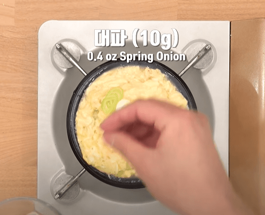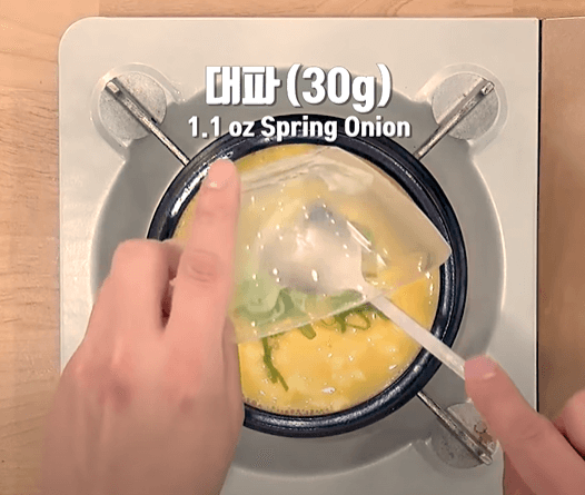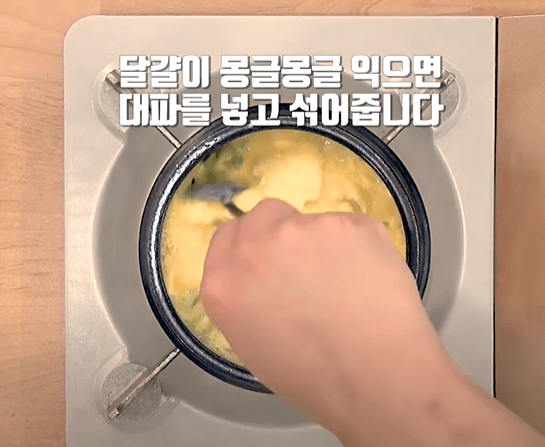 대파 30g을 달걀이 몽글몽글 익으면 넣어 줍니다.