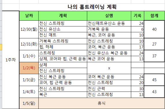뱃살과 옆구리 살을 빼기 위한 효과적인 운동 일정을 만들어야 합니다. 주간 또는 월간 일정을 수립하고 꾸준히 운동하도록 노력하세요. 예를 들어, 매주 월, 수, 금에 운동할 시간을 예약하고 계획을 세우시면 좋습니다. 아래의 액셀 등을 이용하는 것도 좋고 요즘은 어플을 통해 운동 계획과 기록을 할 수 있어 매우 편리합니다. 제가 자주 사용하는 어플 하나도 소개해 드리겠습니다.