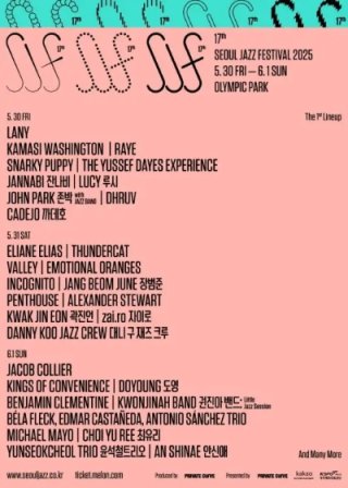 이번 서울재즈페스티벌 2025 1차 라인업은 그야말로 기대를 모으기에 충분한 아티스트들로 구성되었습니다. 특히, 제이콥 콜리어, 카마시 워싱턴, 레이, 썬더캣 등 해외 최정상급 아티스트들과 국내 인기 뮤지션들이 한자리에 모이게 되어 더욱 주목받고 있습니다.