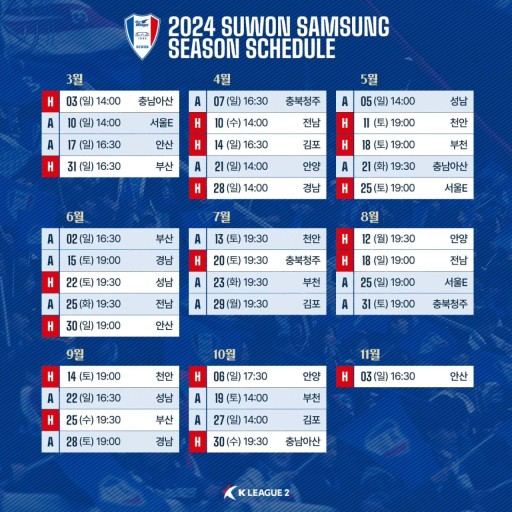 2024년 수원 삼성 전체일정 확인하기