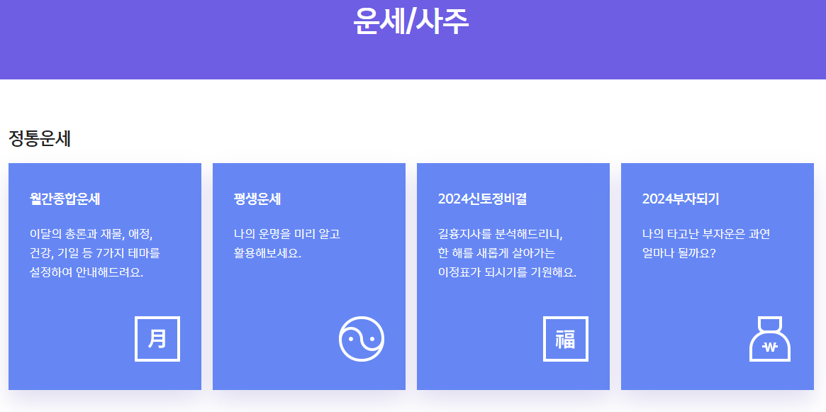 이렇게 간단하게 접속만 하면 다양한 운세를 무료로 즐길 수 있으니 지금 바로 확인 해 보시는걸 추천드립니다.