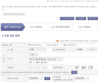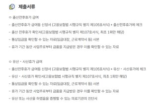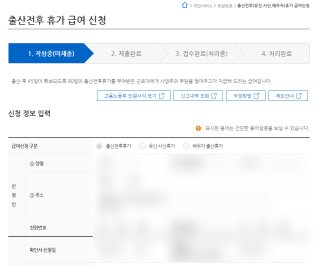- 사업주 확인: 회사에 출산휴가를 신청하고, 사업주로부터 '출산전후휴가 급여 신청서'와 '확인서'를 받습니다. (회사에서 고용보험 시스템으로 바로 신청해주는 경우도 많습니다.)
