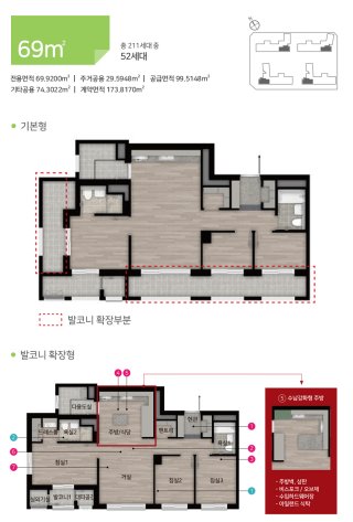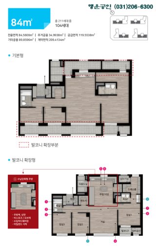 - 총 211세대, 전용면적 69㎡ 및 84㎡로 구성되어 있습니다.
