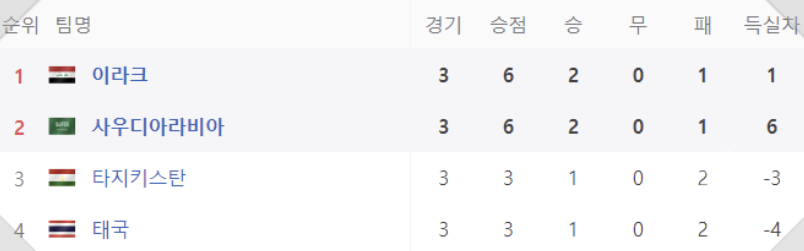 - 4월 20일 : 태국 0-5 사우디아라비아