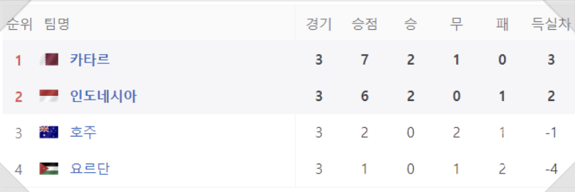 - 4월 16일 : 카타르 2-0 인도네시아