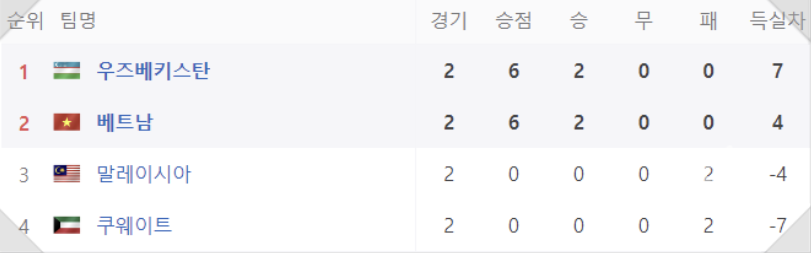- 4월 21일 : 쿠웨이트 0-5 우즈베키스탄