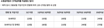 | 1년 이상 ~ 3년 미만 | 120일 | 150일 |