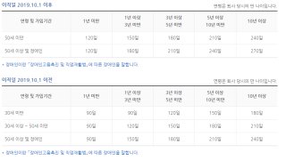 | 5년 이상 ~ 10년 미만 | 180일 | 210일 |