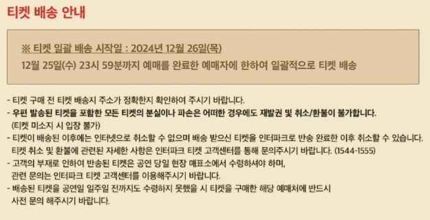 티켓 예매 후에는 반드시 배송 주소를 확인해야 해요. 예매 후에는 취소나 환불이 불가능하니, 신중하게 결정하세요.