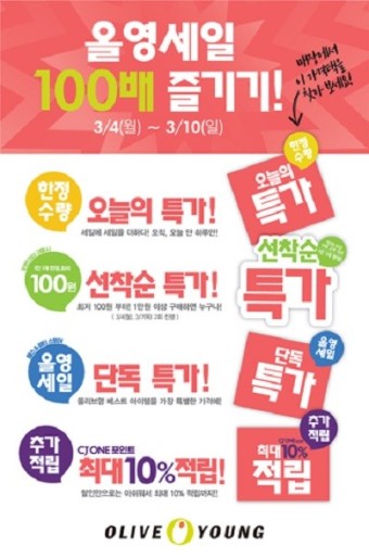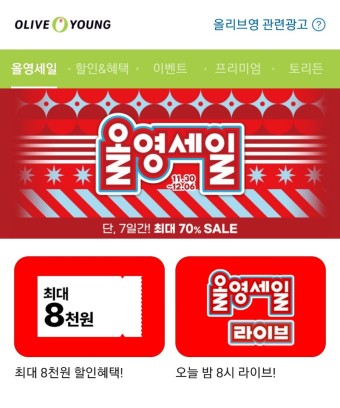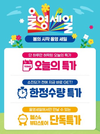 | 올영세일 | 연 4회, 각 7일간 진행 | 최대 70% | 대규모 할인 행사 |
