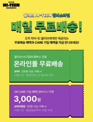 | 앱 전용 쿠폰 | 올리브영 모바일 애플리케이션에서 제공하는 선착순 쿠폰 사용 |