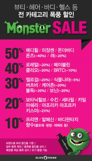 | 올영데이 | 매월 25일 ~ 27일 | 최대 60% | 매달 진행되는 세일 |