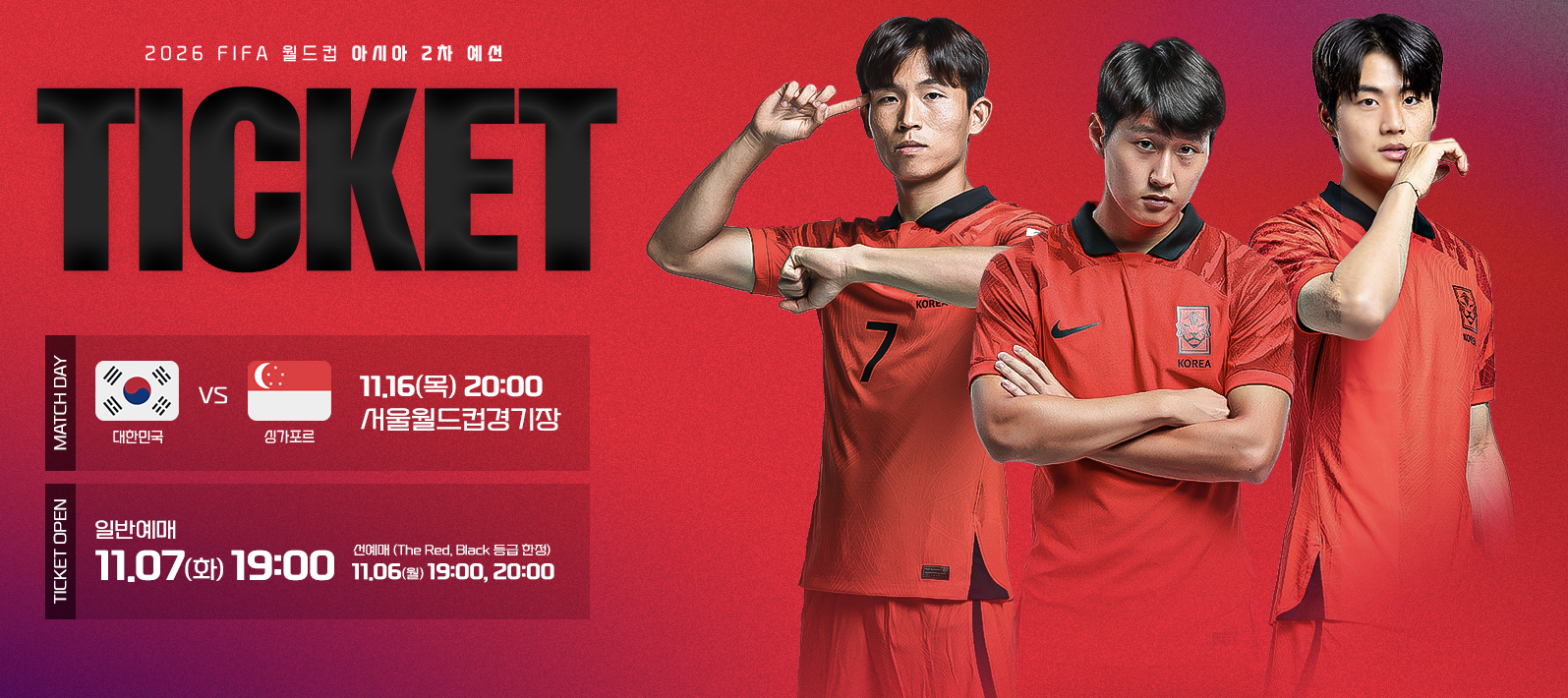 월드컵 2026 예선 티켓 구매방법 대한민국 vs 싱가포르 11월 16일